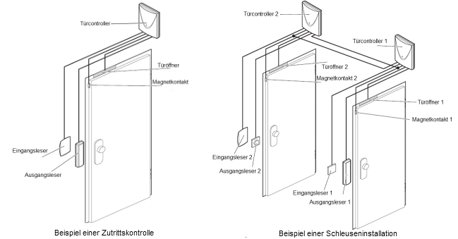 Die ACCO-Controller können Standalone zur Steuerung einer einzelnen Tür eingesetzt werden und über Zweidraht-Bus mit bis zu 254 weiteren Türcontrollern vernetzt werden. Diese Subsysteme können wiederum über IP mit beliebig vielen weiteren Systemen vernetzt werden. So können standortunabhängige Systeme beliebiger Größe erstellt werden. |