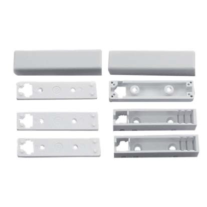Aufbaugehäuse für den Magnektkontakt EMK 46 mit Unterlegteilen. Bestehend aus 2 Stück Aufbaugehäuse, 2 Stück Kappen, 3 Stück Unterlegteile 2 mm.