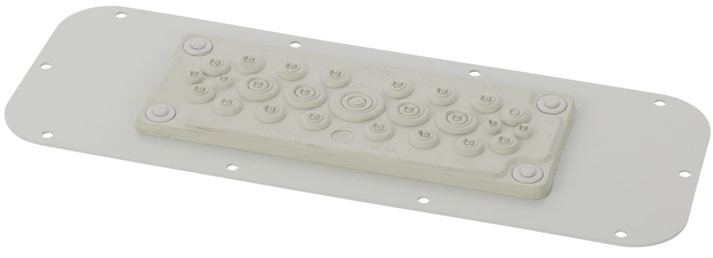 Die Membrandurchführung AWOH-PM25C ermöglicht die Kabeldurchführung im hermetischen Gehäuse der AWOH406020 / AWOH406030 / AWOH506025. Die Membran besteht aus flexiblem Material, das die Dichtheit des Gehäuses gewährleistet und die Kabel vor Beschädigungen schützt. Die Membrandurchführung wird mit zehn Befestigungsschrauben und einer Dichtung, die im Lieferumfang des AWOH-Gehäuses enthalten ist, am Gehäuse befestigt.