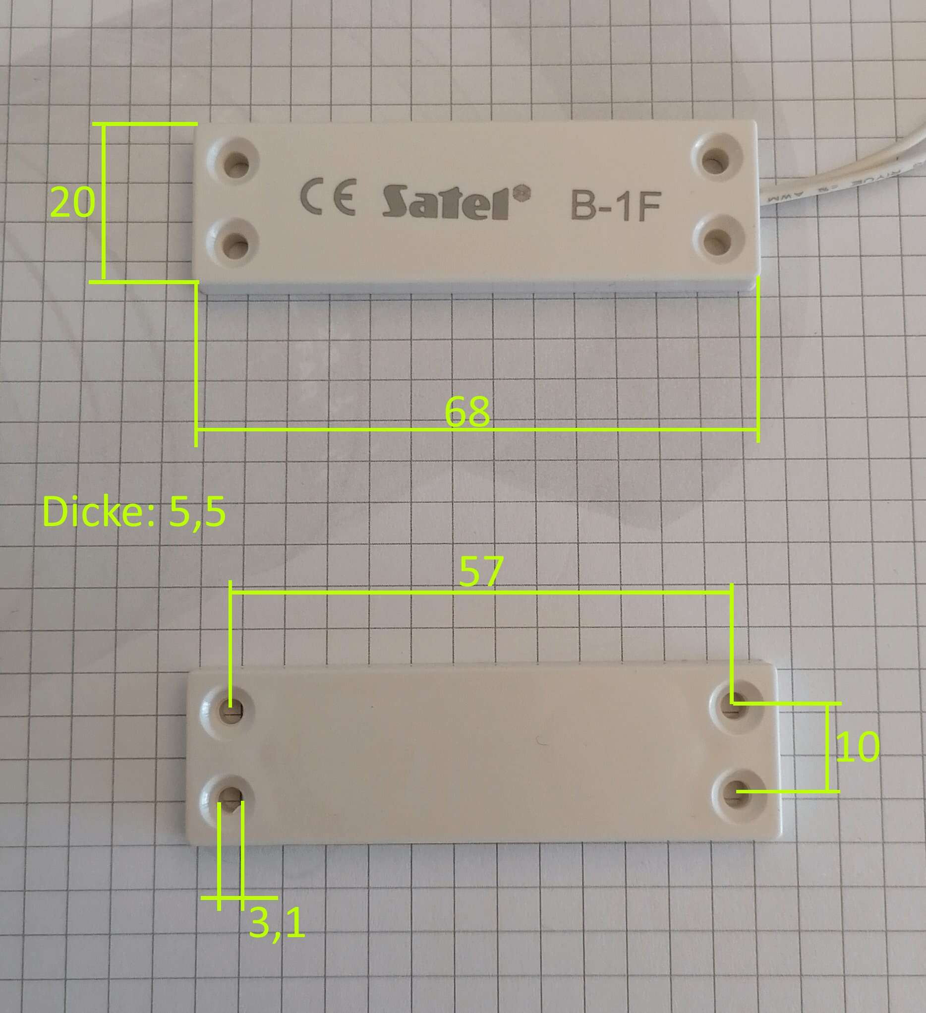 Der B-1F ist ein flacher Aufbau-Magnetkontakt und wird an die Montagefläche geschraubt. Der B-1F ist auch in weiß erhältlich. Die sehr flache Bauform von nur 68 x 20 x 5,3 mm ermöglicht eine bequeme Installation im Profil zwischen Fenster und Rahmen. Trotz dieser Bauform hat der B-1F einen Schaltabstand von 25mm.