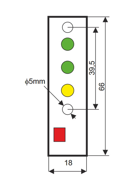Das EN54M-LED ist eine abgesetzte LED-Anzeigeplatine für alle EN54M-Einbaunetzteile. Es wird bequem über einen Stecker mit dem Netzteil verbunden. Die 3 LEDs sind Statusanzeigen für 230V Versorgungsspannung, Ausgangsspannung und ALARM (Sammelausfall).