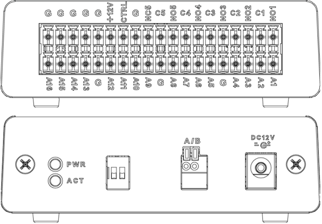 Das Modul LUNA 1606 erweitert einen (kompatiblen!) LUNA Rekorder um 16 Alarmeingänge sowie 6 Alarmausgänge. Das Modul wird mittels RS-485 mit dem Rekorder verbunden. Es können bis zu vier Module mit einem Rekorder verwendet werden.