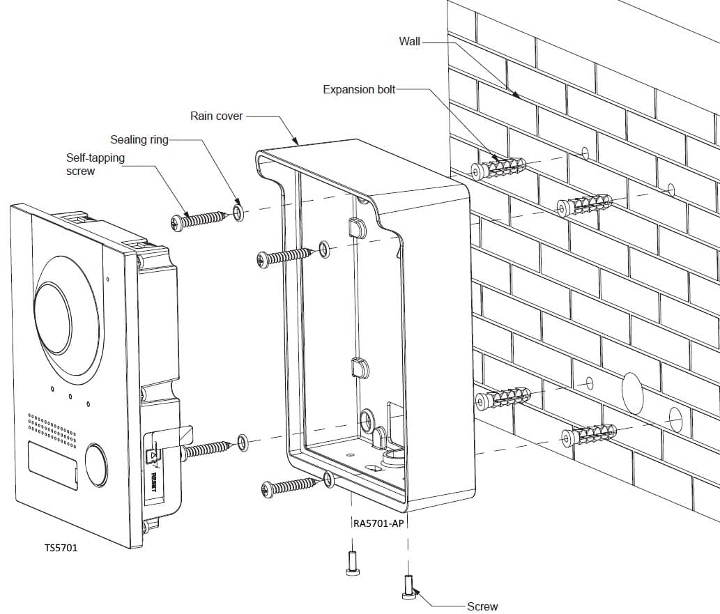 Der Einbaurahmen LUNA RA5701-AP ist für eine Aufputzmontage von der Video-Türsprechanlage LUNA TS5701 vorgesehen.