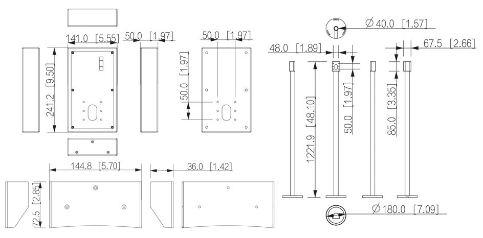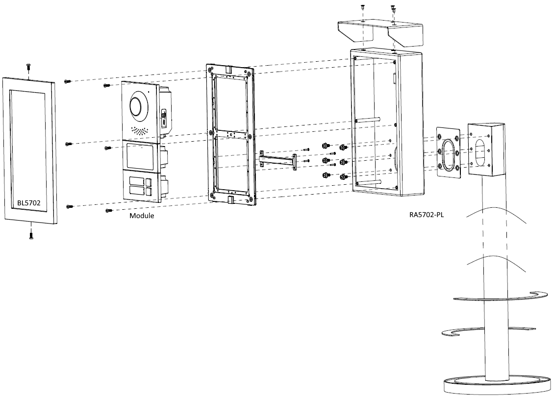 Die RA5702-PL ist eine freistehende Säule mit Regenschutzdach und bietet Platz für zwei Türstationsmodule. Eine Blende LUNA BL5702 wird für die Installation zusätzlich benötigt.