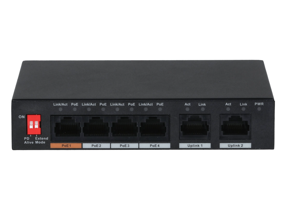 - 4-fach PoE-Switch + 2 Uplink-Ports
