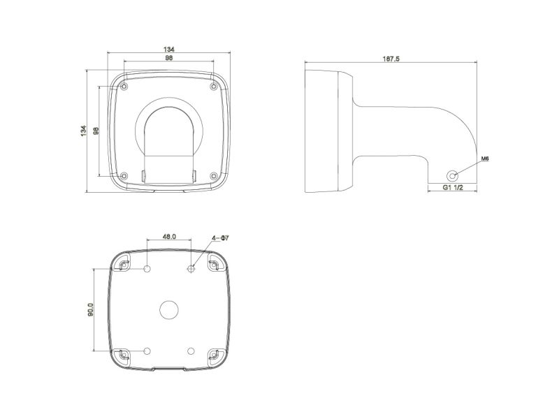 Der Wandhalter LUNA WH07 mit interner Kabelführung und Anschlussbox ist aus stabilem Aluminiumguss und ermöglicht die Wandmontage von diversen LUNA Domekameras.