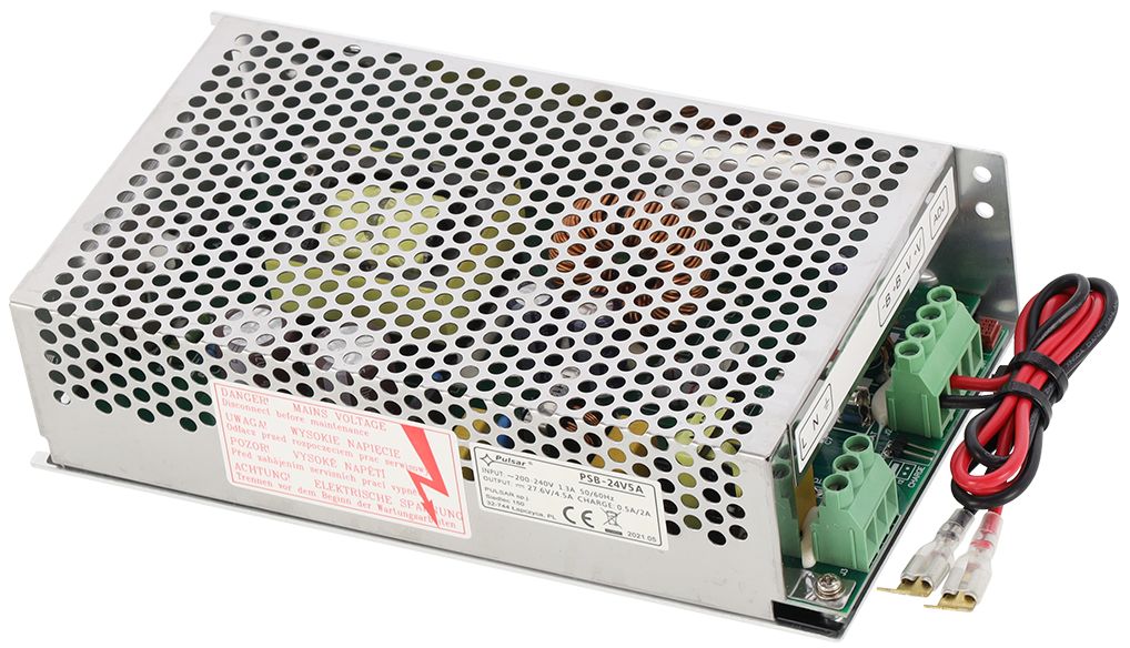 Das Netzteil PSB-24V5A ist ein universell einsetzbares und gepuffertes 5A Impulsnetzteil mit einem Akkuladestrom von 0,5A/2A. Aufgrund der kompakten Abmessungen passt es hervorragend in kleinste Gehäuse. Das Netzteil verfügt über Kurzschluss-, Überspannungs- sowie Überlastschutz.