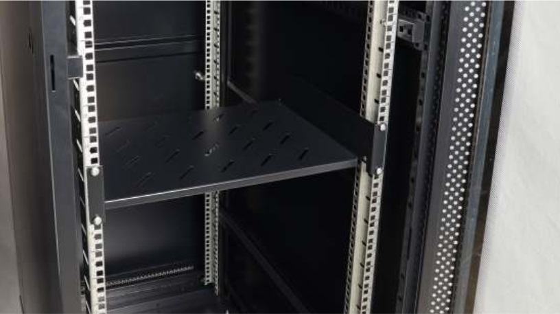 Der starre Fachboden RAPD600 ist für 19″-RACKs mit 350 mm Tiefe. Hierauf kann Technik abgestellt und installiert werden, die nicht über 19″-Befestigungen verfügt. Durch die Vierpunkt-Befestigung und 60kg Dauerbelastbarkeit ist er sehr belastbar und flexibel einsetzbar.