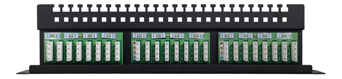 Das RP-U24V6 bildet den Endabschluss in der 19″-Technik für strukturierte Verkabelung. Es stellt 24 Ports für UTP/Cat 6 auf nur 1HE zur Verfügung. Die rückseitig aufgelegten Kabel können sauber auf der Führungs- und Entlastungsschiene fixiert werden, die farbig markierten LSA-Klemmen erleichtern das Anlegen. Die Frontanschlüsse sind fortlaufend und gut leserlich nummeriert. Die 4-Punkt-Befestigung garantiert hohe Haltbarkeit. Das RP-U24V5 wird komplett mit Schrauben, Kabelbinder und Topfmuttern geliefert.