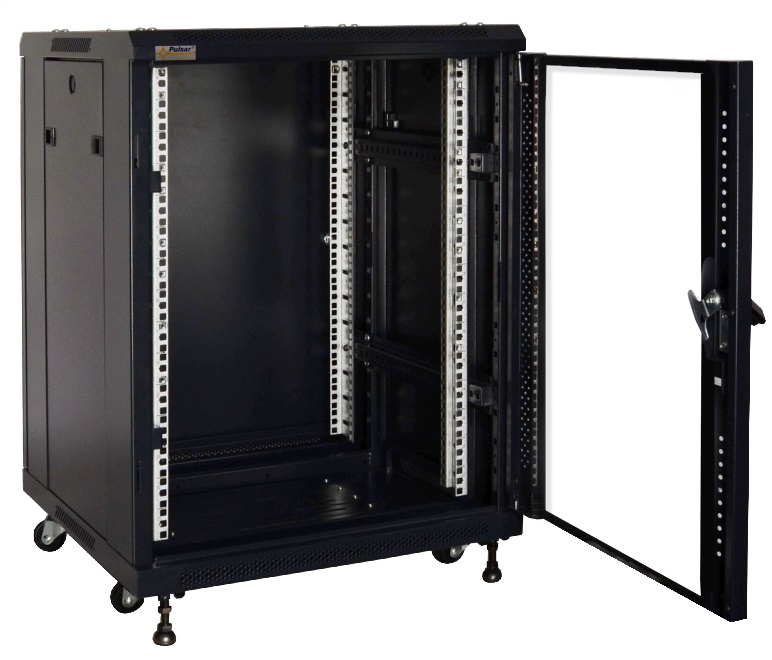 Der fahrbare 19″-Schrank ZRS1566 bietet 15 Höheneinheiten für CCTV-Verteiler, Patchfelder und 19″-Infrastruktur jeder Art. Er lässt sich bequem über die Schwerlastrollen zum Montageort transportieren und kann über die beiliegenden Stellfüße fixiert werden. Die hochwertige Verarbeitung und ein durchdachtes Installationsmanagement für Montagestege, Kabelhalter und Rack-Technik erleichtern die Fertigung, Erweiterung und Wartung der Systeme. Die Fronttür besteht aus 5mm gehärtetem Glas. Durch den justierbaren Abstand der vorderen und hinteren Schienen ist der Schrank an die unterschiedlichste Technik anpassbar. Die geringe Tiefe ermöglicht die Installation bei beengten Räumlichkeiten. Montagemöglichkeiten für Belüftungssysteme (RAWP und andere) sowie spezielle Belüftungsbleche an Vorder-, Unter- und Oberseite schützen vor Stauhitze und erleichtern das Temperaturmanagement.